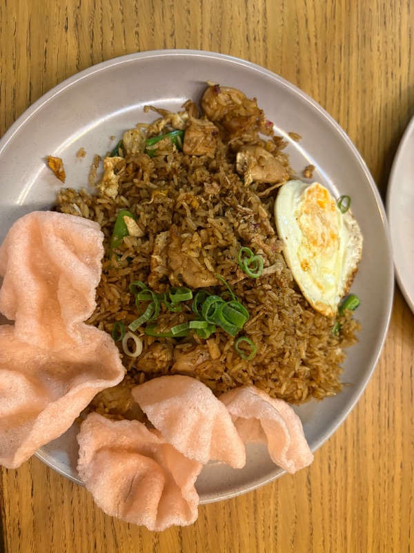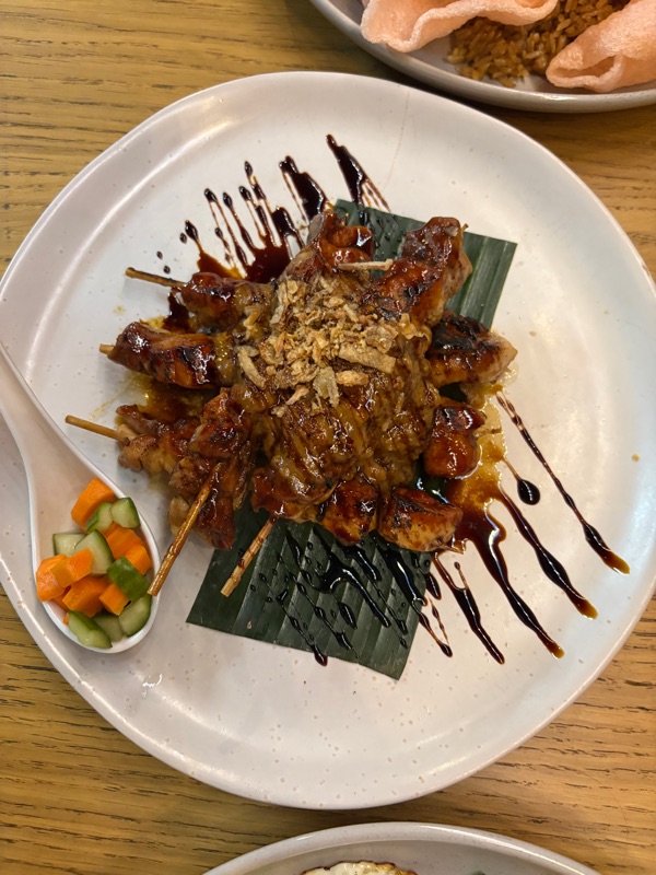 I was not disappointed. We both had Nasi Goreng, I was too chicken to try the salted fish (Angel Fish 🐠). I love Angel fish, in the ocean, and could not eat one. I have snorkelled with these beautiful fish so they are a no go. I had chicken. We also shared satay skewers. Let me suggest something, when you go because you should, get one Nasi Goreng and a few entrees. The rice dish was huge.